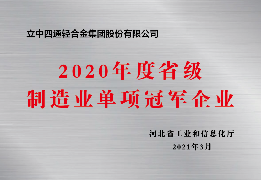 近日,河北省工业和信息化厅发布《第二批河北省制造业单项冠军企业和单项冠军产品名单》,四通新材“中间合金”荣获河北省制造业单项冠军产品。